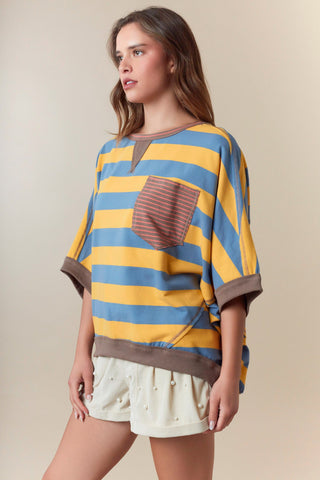 Fantastic Fawn Blue & Yellow Stripe Color Block Easy Pullover