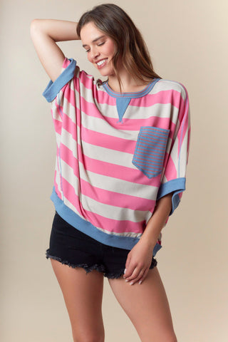 Sew In Love Cream & Black Stripe Short Sleeve Oversized Sweater Top
