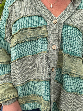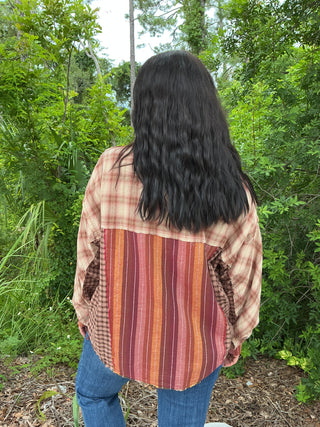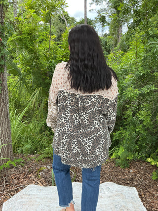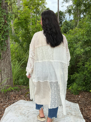 Oli & Hali Ecru Patch Lace Button Up Long Shacket Top Kimono