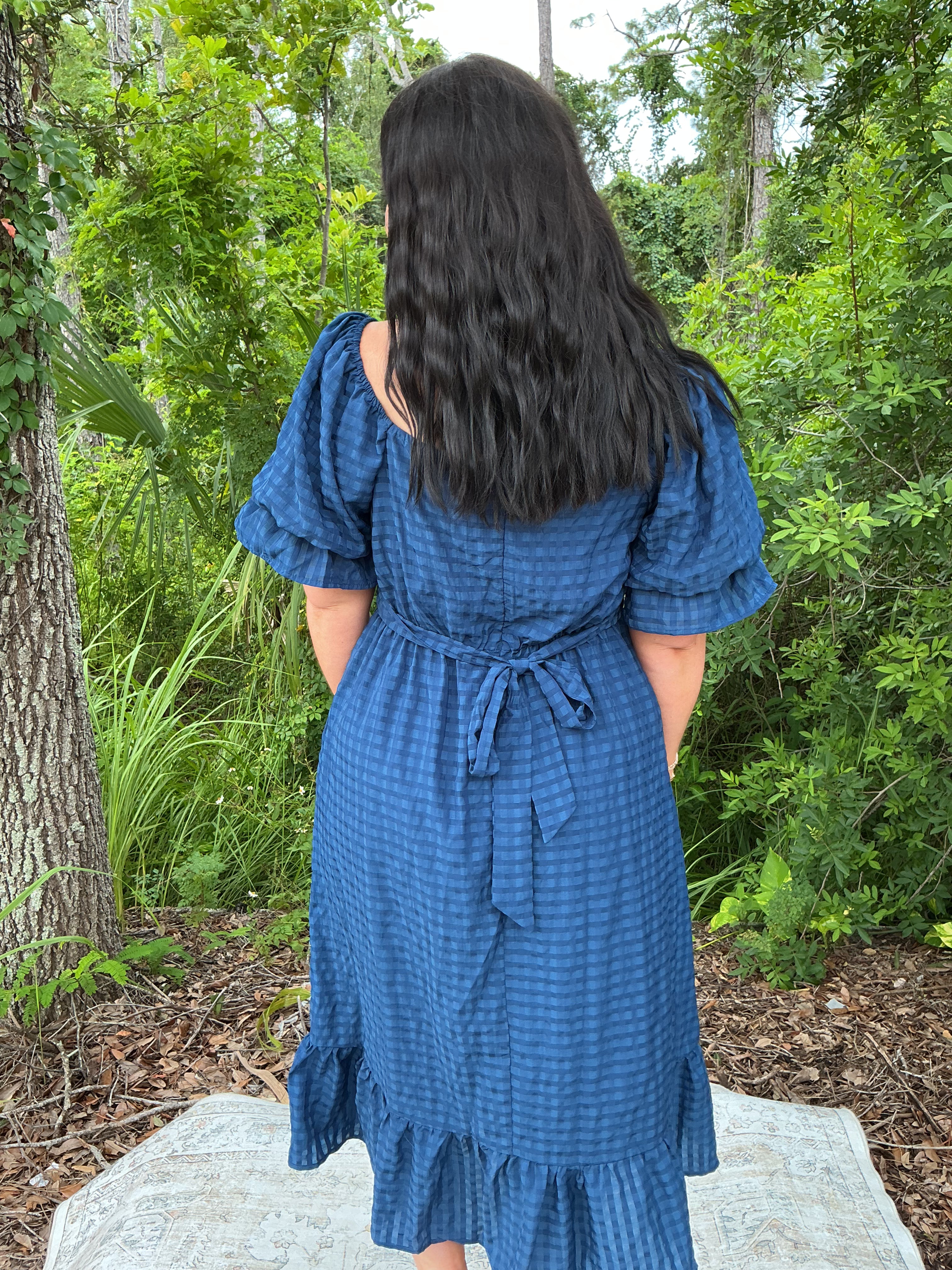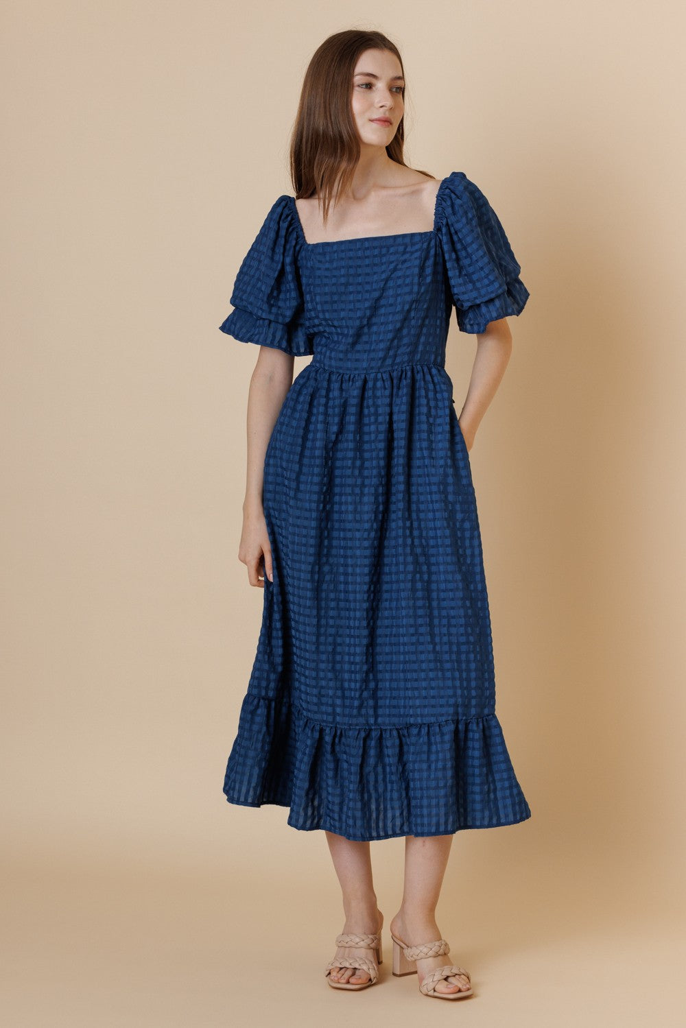 Step out in style with the A & She Navy Textured Puff Sleeve Midi Dress. Its playful puff sleeves add a fun, flirty touch, while the textured navy fabric brings a chic, sophisticated vibe. Perfect for brunches or garden parties, this midi dress balances comfort with effortless charm, making it your go-to piece for turning heads with a smile.