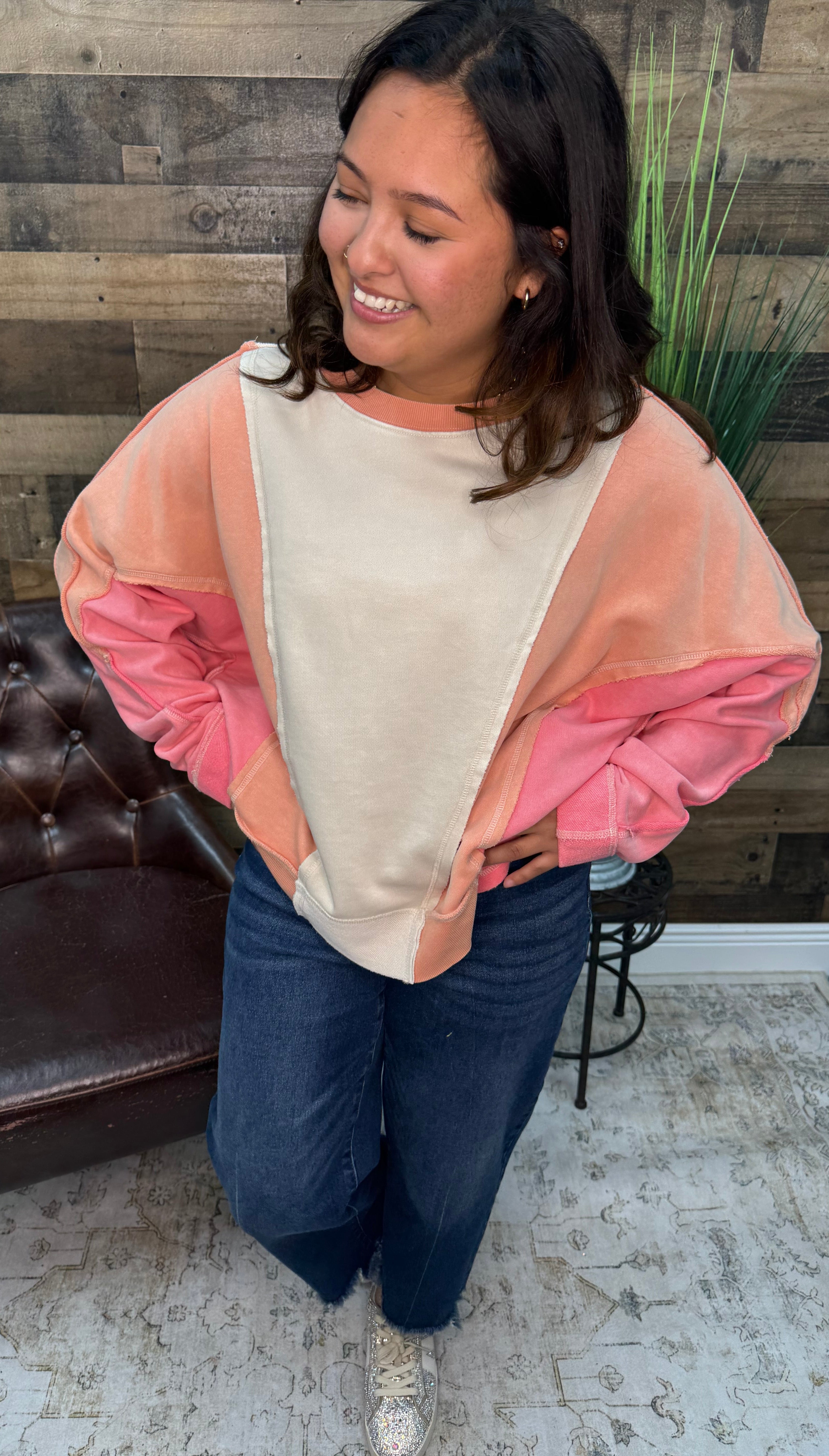 Throw on this effortless oversized long sleeve top and instantly elevate your casual game! The gorgeous coral mix hue brings warmth and personality to any outfit, while the relaxed fit ensures maximum comfort for all-day wear. Perfect for layering, lounging, or making a laid-back statement. Whether you're pairing it with your favorite jeans or dressing it up with a skirt, this versatile piece is about to become your new go-to favorite. Cozy, chic, and unapologetically you.