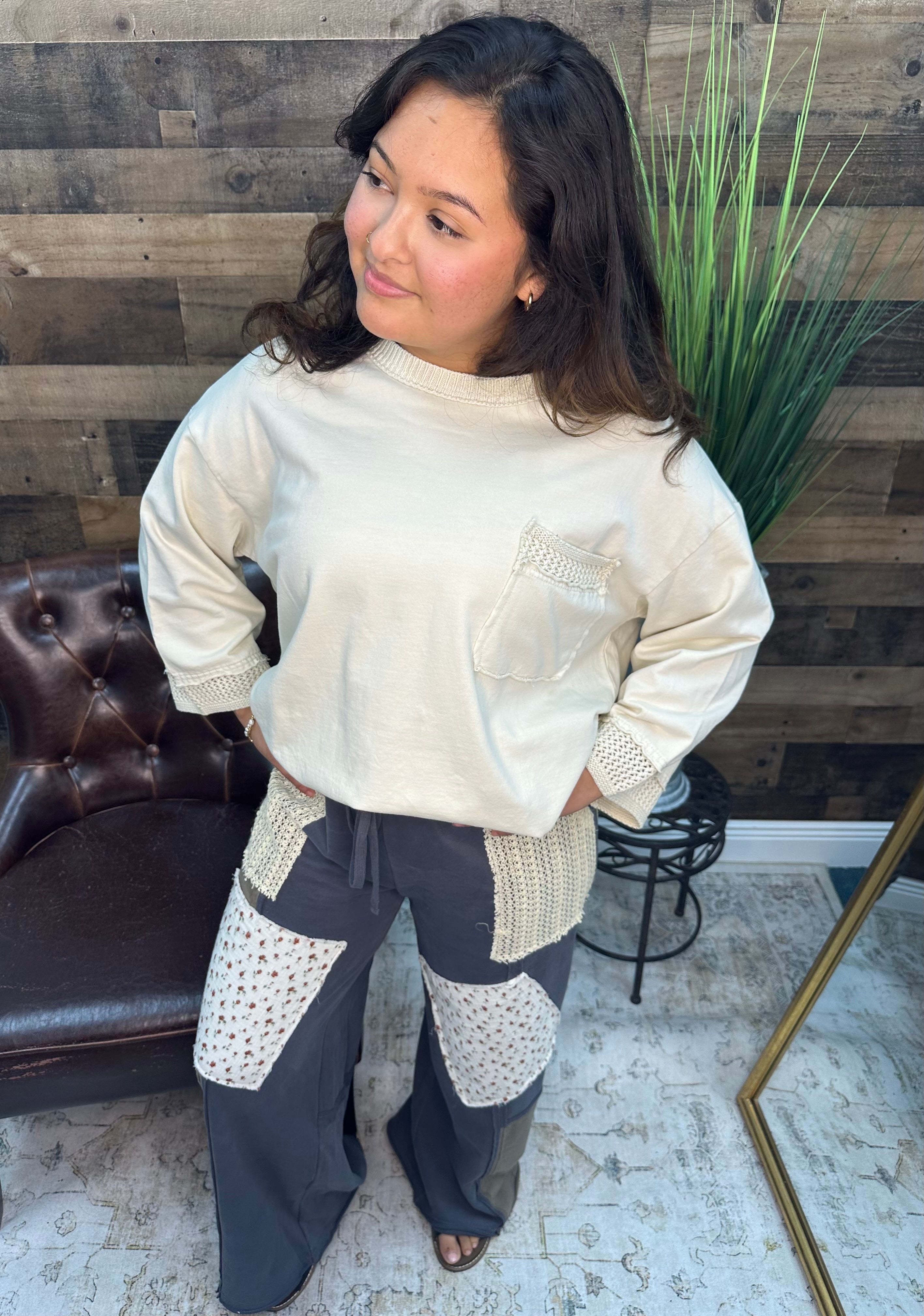 Effortlessly chic meets wonderfully cozy in this Easel mineral wash top! The soft, lived-in finish gives off that perfectly relaxed vibe, while the 3/4 sleeves hit just right for layering magic. Those textured trim details? They're the cherry on top—adding visual interest and a touch of personality to your everyday rotation. Throw it on with your favorite jeans or dress it up for a casual night out. This is the kind of piece that makes getting dressed actually fun.