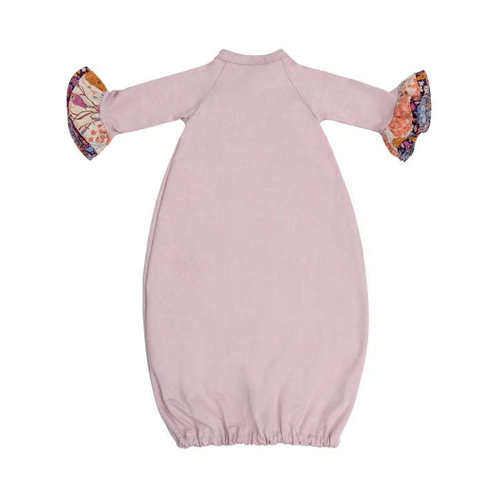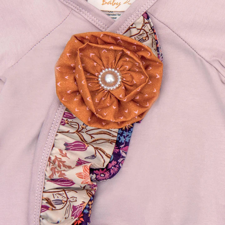 Haute Baby is the epitome of Southern charm! This lilac infant gown features fun fabric rufles and a cute flower to finish. Perfect for pictures!