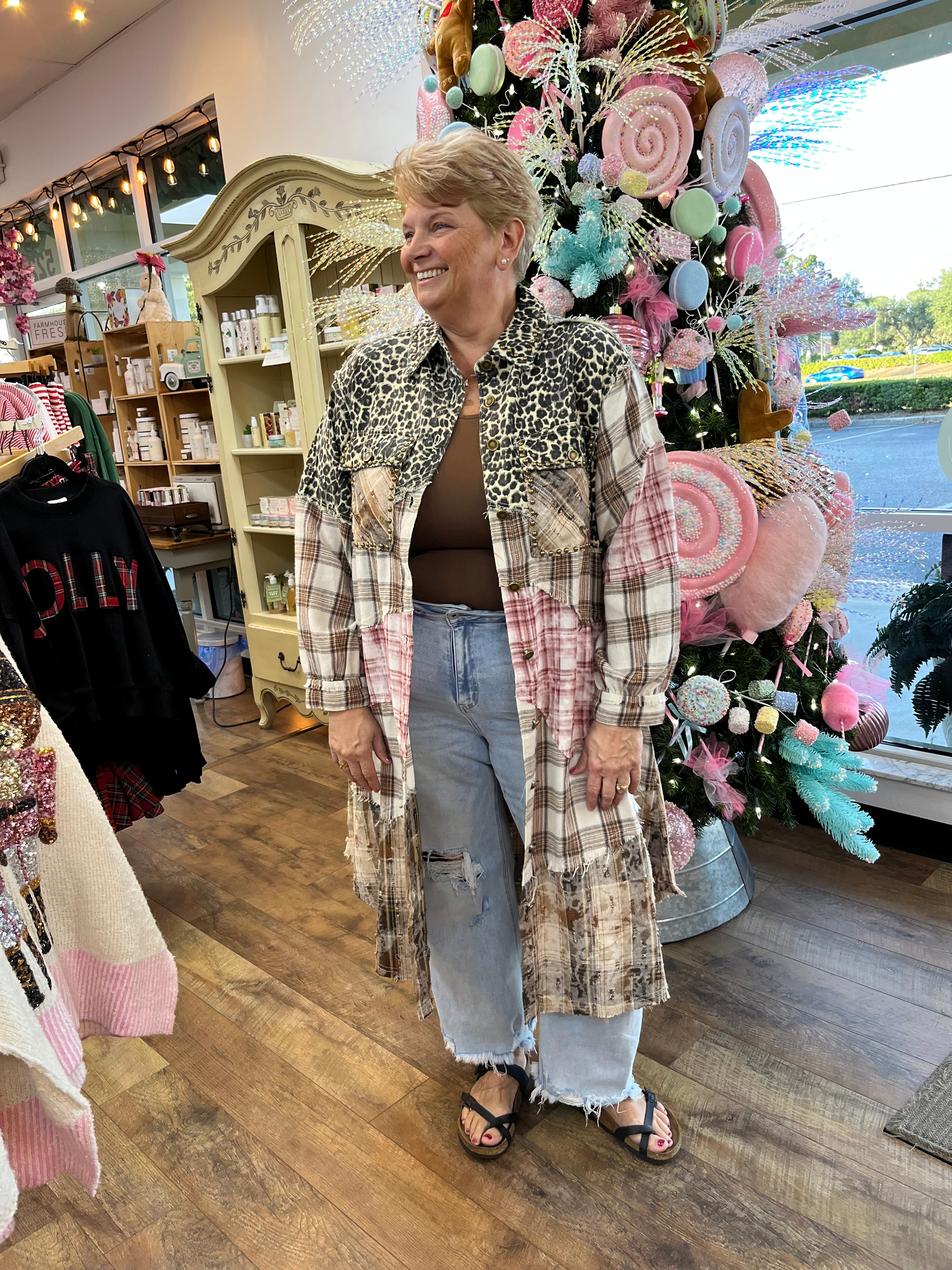 Layer up with attitude in this POL long line jacket that fearlessly blends leopard print with classic plaid for a look that's anything but boring. The extended cut provides effortless coverage while the mixed pattern design lets you show off your bold, eclectic style. Perfect for throwing over everything from casual tees to dresses, this jacket proves that pattern clashing is totally your thing. Cozy, cool, and unapologetically you.