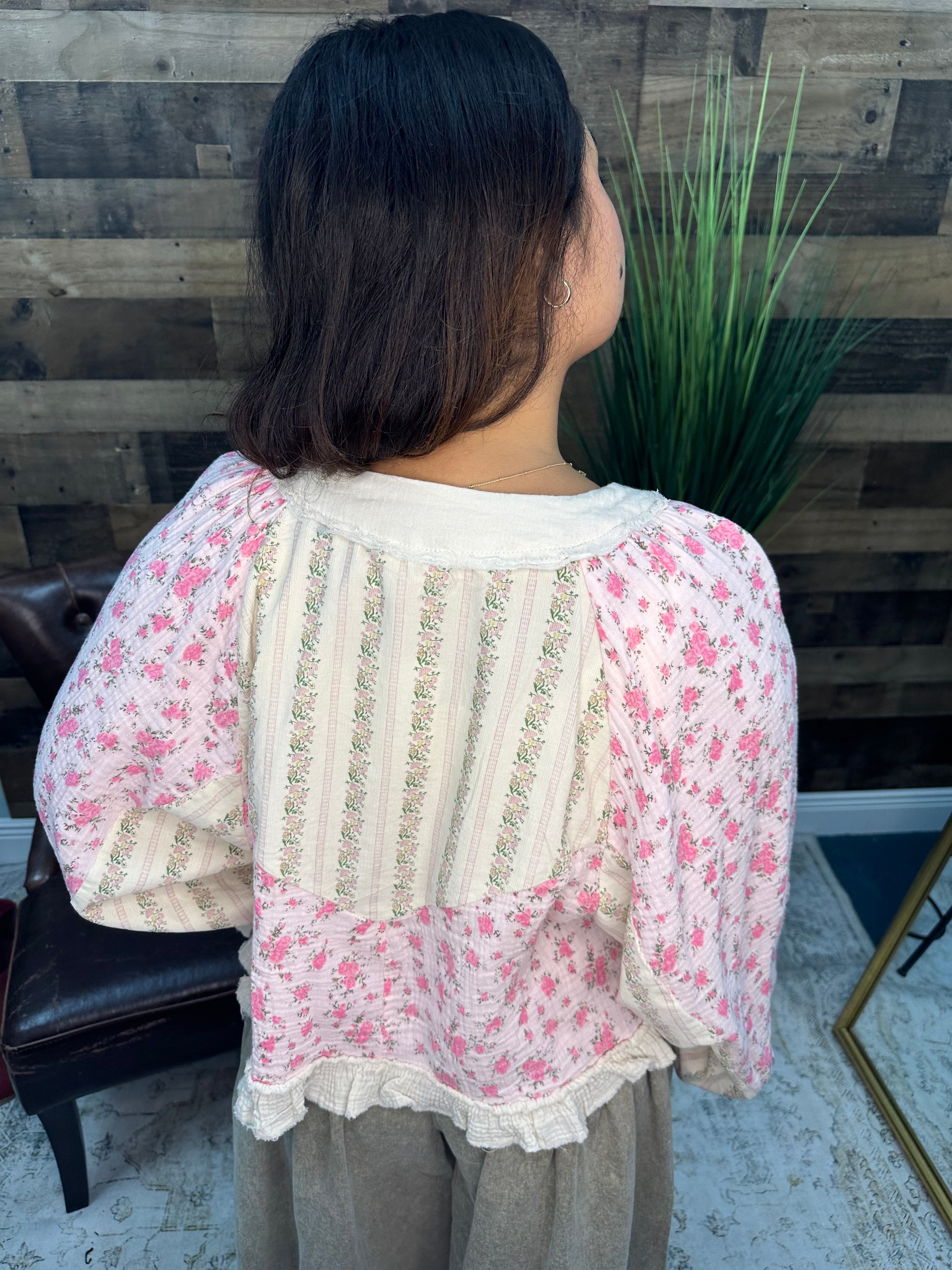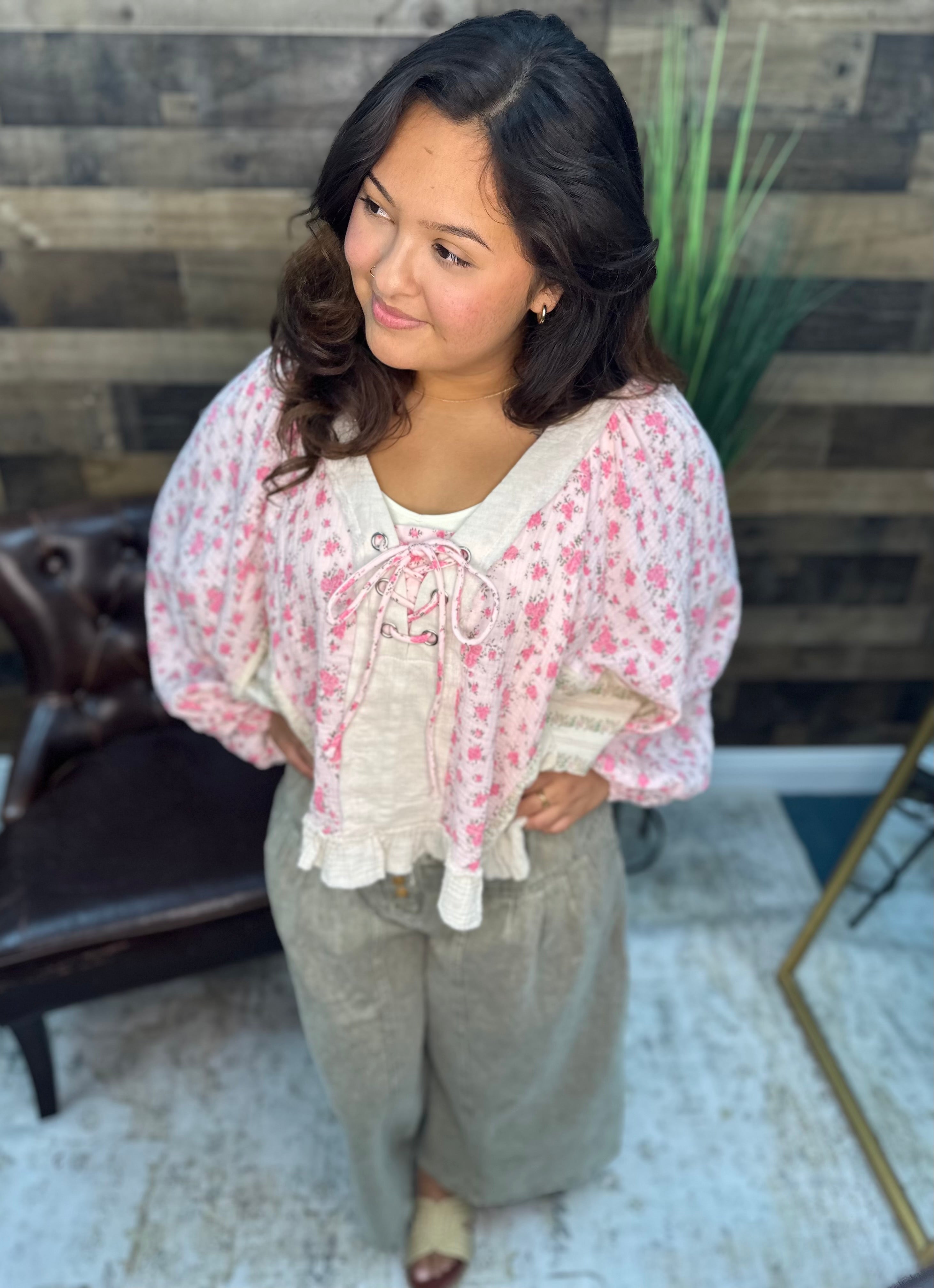 POL Pink Floral Lattice Swing Top